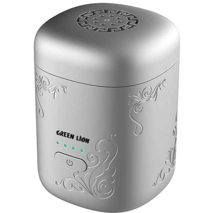 Green Lion Aseel Bakhour Burner with Aesthetic Appearance, 1400mAh Battery, 120 Seconds Single Burning Time, Auto-Off Function, Wide Area Coverage, LED Indicator, Safe & Non-Toxic - Silver