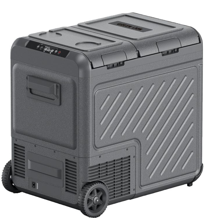 Green Lion GFC-55 Car Fridge with 55L Capacity, Pull Bar & Wheels, Touch Control Display & Interior Lights, Dual Power Supply, Child Safety Lock, Two Shelves, Quiet Operation - Black