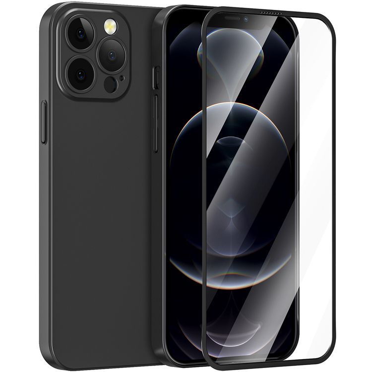 Green Lion Carsaca Plus 2-in-1 Protection Pack with Case & Clear Screen Protector for iPhone 13 Pro Max, Anti-Fingerprint, PC Material, 360° Protection, Anti-Scratch - Black