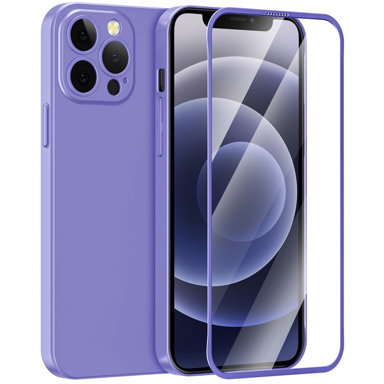 Green Lion Carsaca Plus 2-in-1 Protection Pack with Case & Clear Screen Protector for iPhone 13 Pro Max, Anti-Fingerprint, PC Material, 360° Protection, Anti-Scratch - Light Blue