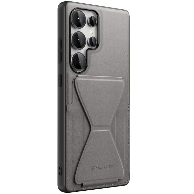 Green Lion Classio Stand Leather Case for Samsung S25 Ultra with Card Holder, Anti-Scratch, Foldable Stand, Comfortable Grip, Drop & Camera Protection - Titanium