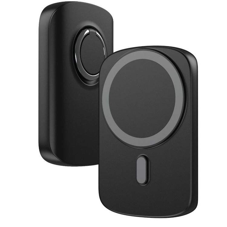 Green Lion Delicate MagSafe 5000mAh Power Bank, PD 20W Fast Charge, Strong Magnets, 15W Wireless Output, USB-C Port, Ultra-Slim & Pocket Size, Ring Holder - Black