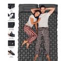 Green Lion Double Air Bed with Inflatable Air Mattress, Up to 300kg Load Capacity, Anti-Slip Diamond Texture, Camping-Friendly, Quick Inflation & Deflation, Integrated Pillow Design - Gray