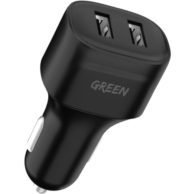 Green Lion Dual Port Car Charger 12W, Reliable and efficient, Compact and stylish design - Black