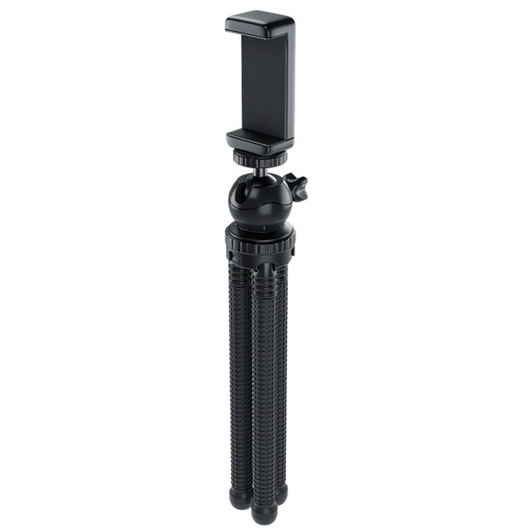 Green Lion Flexible Tripod with Foam Grips, ABS + TPR & Aluminum Material, 3kg Load Capacity, 360° Rotation, Flexible Legs, 2-Angle Adjustable, Pan & Tilt Functions - Black