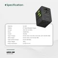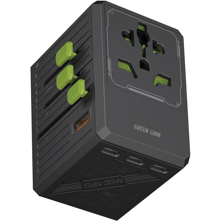 Green Lion GaN Adapter 6-in-1 & 2-in-2 Cable, PC Flame Retardant & Copper Material, PD 35W Fast Charging, Universal AC Sockets - Black