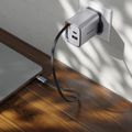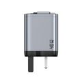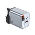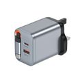 Green Lion GaNPremium UK Plug Wall Charger with 40W Power Delivery, Retractable Type-C Cable, 0%-50% Charge in 30 Minutes, PC Flame Retardant Material, USB-C & USB-A Ports - Gray