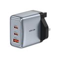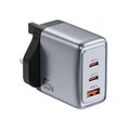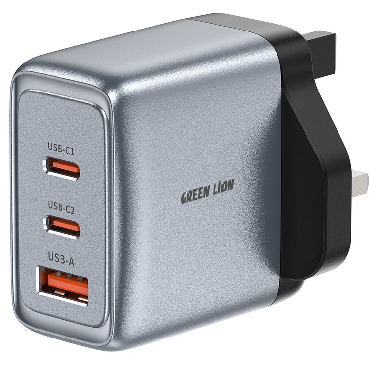 Green Lion GaNPremium UK Plug Wall Charger with 65W Power Delivery, 0%-50% Charge in 30 Minutes, PC Flame Retardant Material, Multiple Protection, Dual USB-C & USB-A Ports - Gray