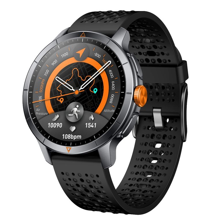 Green Lion GPS Pro Smart Watch with 1.6 Inches Large Display, Barometer & Compass, Sleep Monitoring, Voice Recording, Real 60Hz FPS, TWS Function, Local Music & Phone Album, Heart Rate Monitoring, Bluetooth Call, Geomagnetic & Altitude, 450mAh Battery, 6 Days Working Time - Black