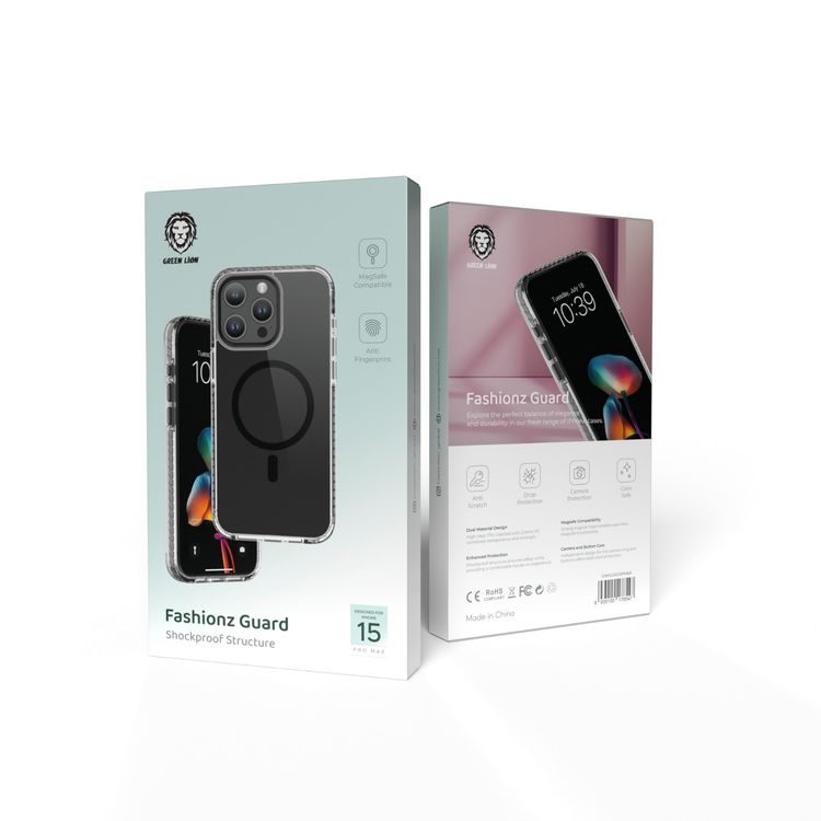 Green Lion Fashionz Guard Case with MagSafe Compatibility for iPhone 15 Pro Max, Buttons & Camera Protection, Anti-Fingerprint, Shock Absorption, Anti-Scratch - Black