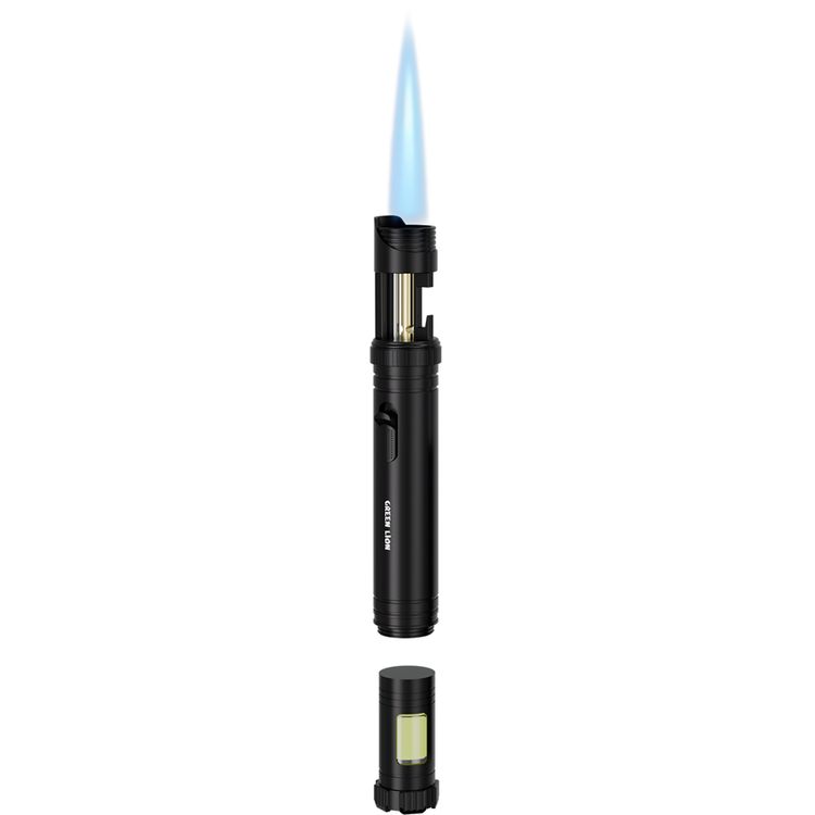 Green Lion Jet Lighter X LED Torch Flame Lighter with 3-Lighting Modes, Zinc Alloy Case, Refillable Butane Chamber, Anti-Leak Valve, Wind-Resistant Flame, Multipurpose Torch Lighter, Flame Lock Switch, Built-in Bottle Opener, Emergency Window Breaker, Extendable Height Up to 910mm - Black