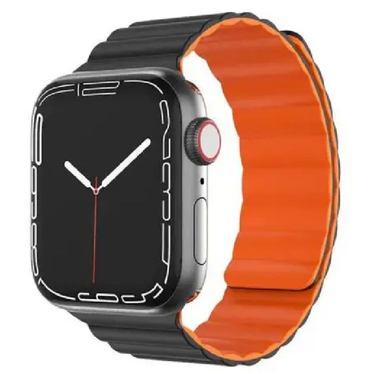 Green Lion Leather Link Watch Strap for Apple Watch 42/44/45/49mm, Adjustable Strap, Soft & Comfortable Fit, High-Quality Material - Black / Orange
