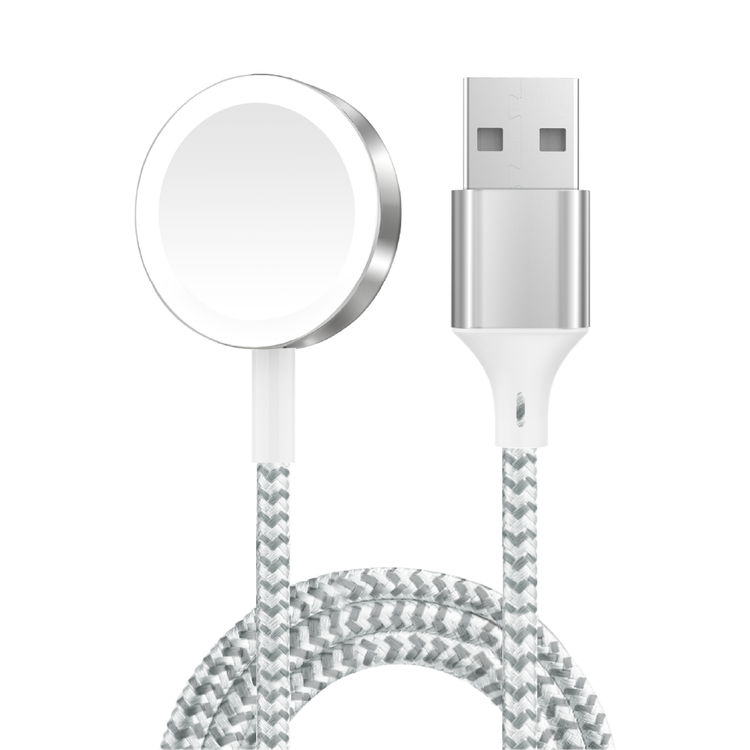 Green Lion Magnetic Charging Cable for iWatch, Type-A Connector, 1.2m Cable Length, Braided Nylon Rope Material, Powerful Magnetic Charging, Over-Temperature & Over-Current Protection - Silver