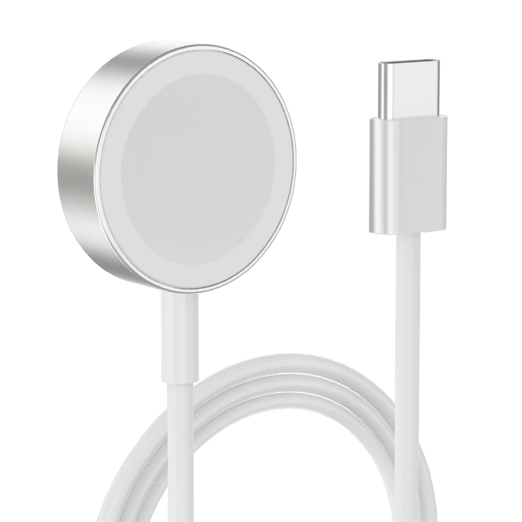 Green Lion Magnetic Charging Cable for iWatch, Type-C Connector, 1.2m Cable Length, Braided Nylon Rope Material, Powerful Magnetic Charging, Over-Temperature & Over-Current Protection - Silver