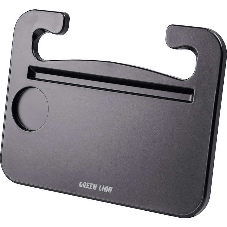 Green Lion Multi-Functional Steering Wheel Tray, 2kg Weight Capacity, Compatible with Circular Steering Wheels (35-42mm), Dual-Mount Design, Gap Storage Box, Easy Cleaning & Installation, Stable Dining Tray, Laptop Workstation, Tablet Slot & Cup Holder – Black