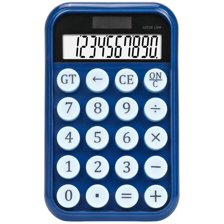 Green Lion Pocket Calculator with 10-Digit LCD Display, Auto Power Off, Dual Solar & Battery Power, ABS Plastic Material - Blue