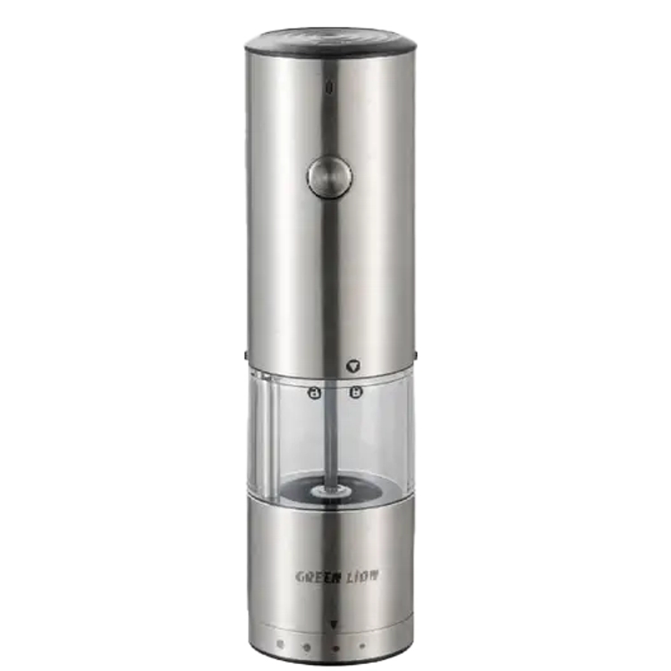 Green Lion Portable Salt & Pepper Grinder, One Hand Operation, Adjustable Coarseness - Silver