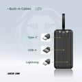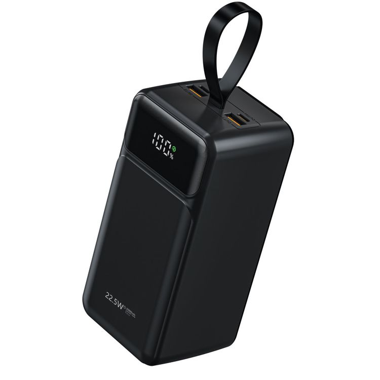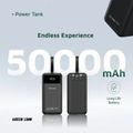Green Lion Power Tank 50000mAh Power Bank with Built-in Cables, 22.5W Power Delivery, Fast Charging Support, LED Display, Long Battery Life, Portable - Black
