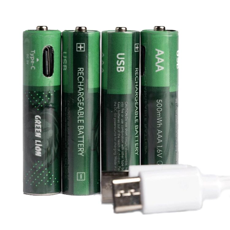 Green Lion Rechargeable Battery AAA with LED Charging Indicator, 500 mWh Energy, Type-C Charging Port, , DC5V Charging Voltage - Green