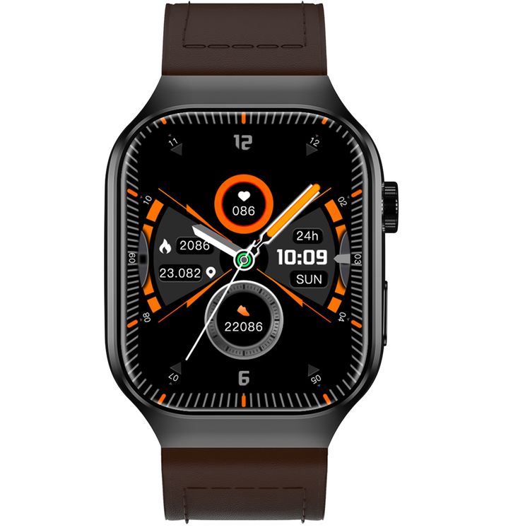 Green Lion Ridge Smart Watch with Magnetic Charging, Bluetooth Calls, Music Player, Health Monitoring, Metal Case Material, PU Leather Strap Material - Black / Brown