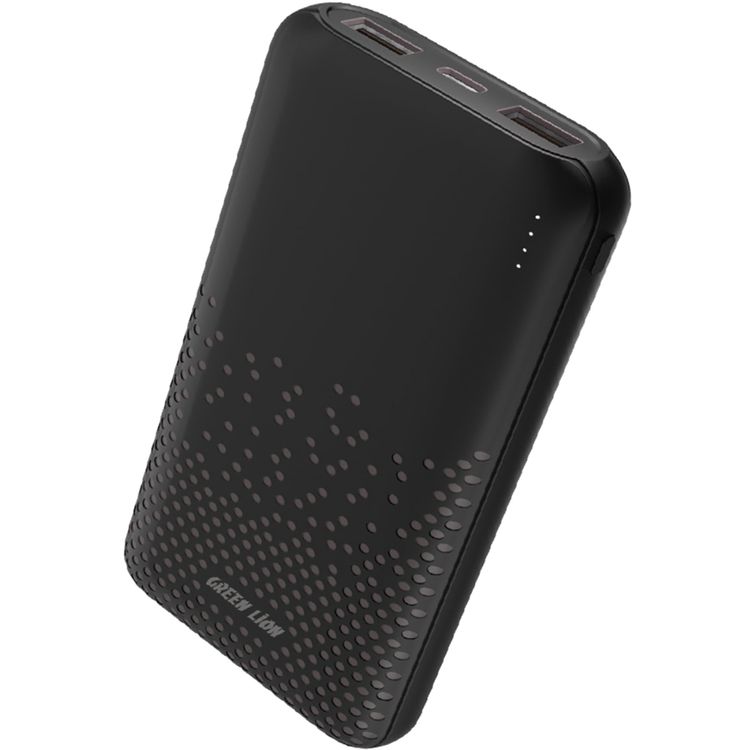 Green Lion Rome 10000mAh Power Bank with 2× USB-A Ports, Type-C & Micro Input, Long Life Battery, ABS & PC Material, Lightweight & Ultra Slim Design - Black