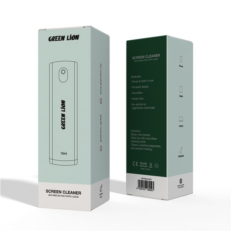 Green Lion Screen Cleaner 10mL, Spray & Cloth in One, Portable Design, Refillable & Resilient, Streak Free, Ease of Use - Gray