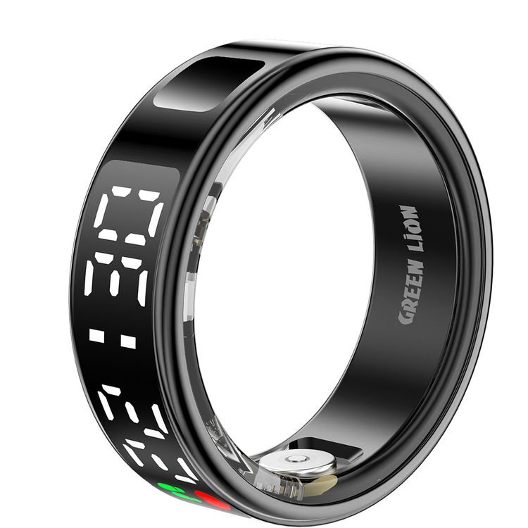 Green Lion Smart Ring Pro with Digital Display, Size 9 (18.9mm), 5.1 Bluetooth Connection, IP68 Waterproof Level, 5 ATM Dustproof Level, 128KB ROM + 96KB RAM, 10–15 Days Standby Time, Compatible with Android 9 & Above, iOS 10 & Above - Black