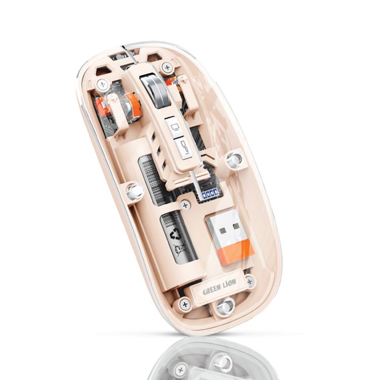 Green Lion Transparent Wireless Mouse 2 with 5 Keys, Connects to Up to 3 Devices Simultaneously, 500mAh Rechargeable Battery, 10m Distance Range, Plug & Play - Pink