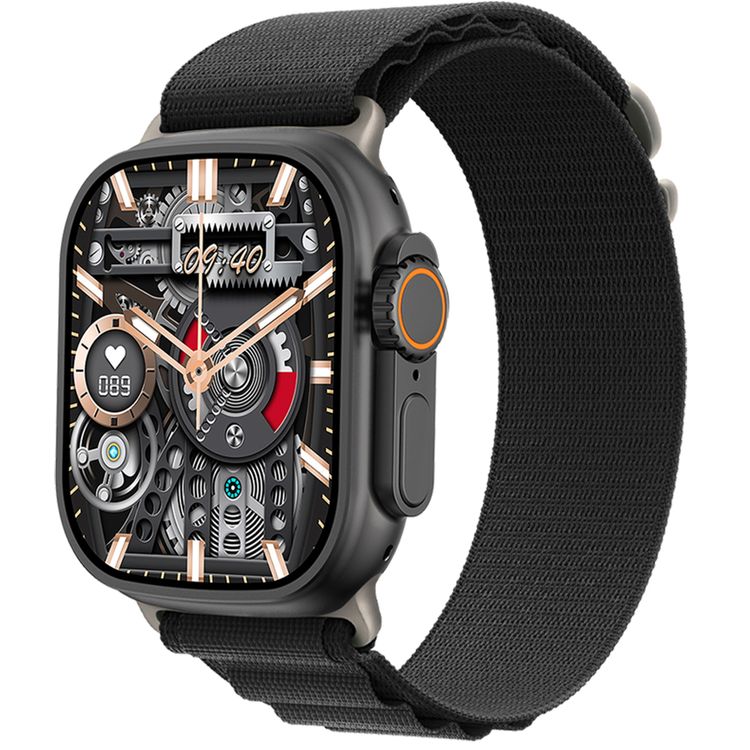 Green Lion Ultra Amoled Smart Watch with Curved Multiple Touch Panel, Original 49mm with Switch Button Strap, 350mAh Battery, 150 Minutes Charging Time, Bluetooth 5.0, Multiple NFC - Black