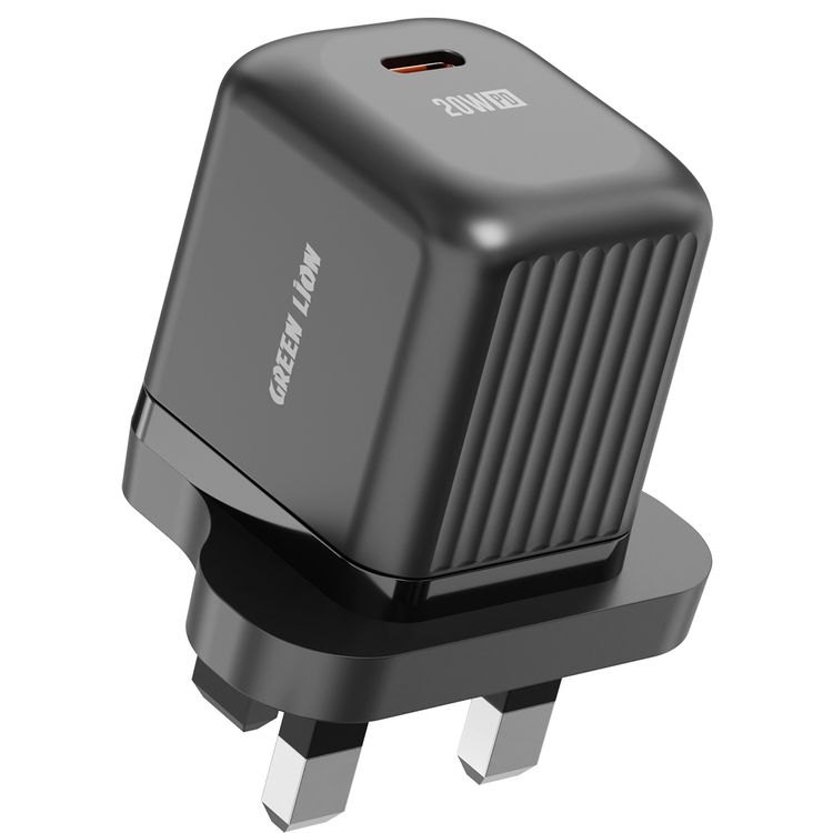 Green Lion Ultra Compact GaN Wall Charger with Single USB-C Port and USB-C to USB-C Cable, PC Flame Retardant Material, Fast Charging Support, Charging Protection, Universal Compatibility, Ultra Portable - Black
