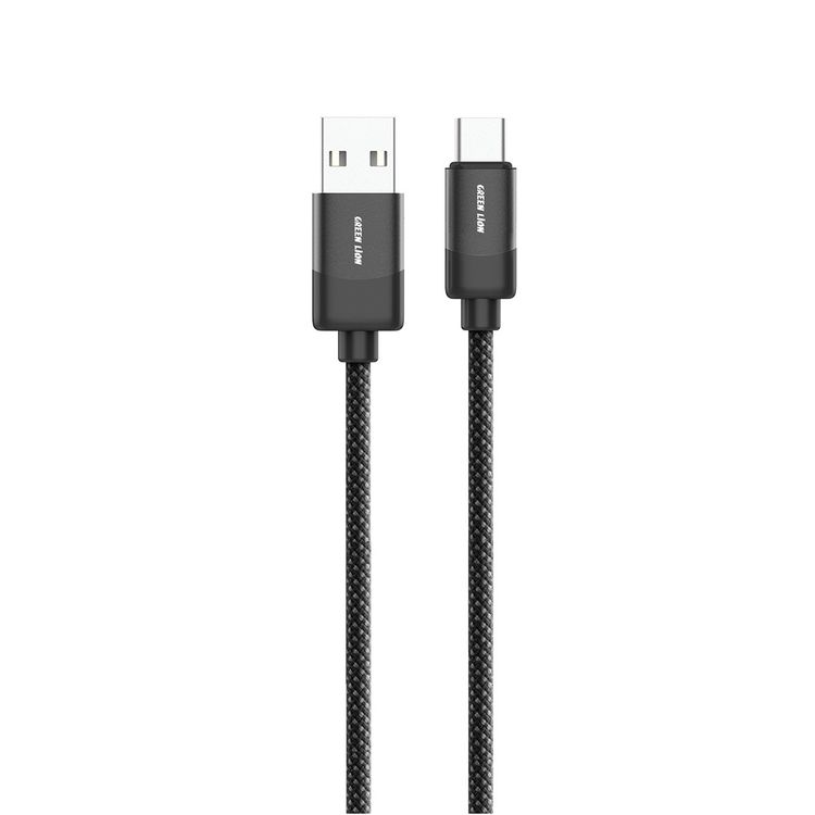 Green Lion USB-A to USB-C Braided Cable with 10000 Bends Lifespan, 1m Length, 15W Current Power, Secure & Safe, Charge & Sync, Wide Compatibility, 480Mbps Transfer Speed - Black