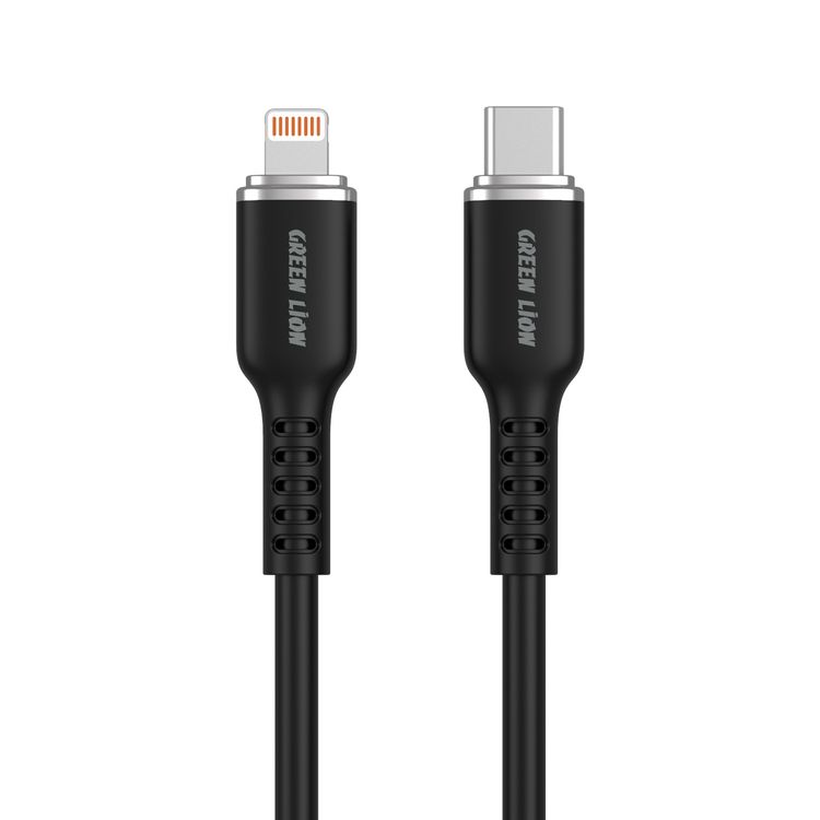 Green Lion USB-C to Lightning Silicone Cable 1m, 480Mbps Transfer Speed, 18W, Fast Charging & Sync, More than 10,000 Bends Life Span, Safe & Secure - Black