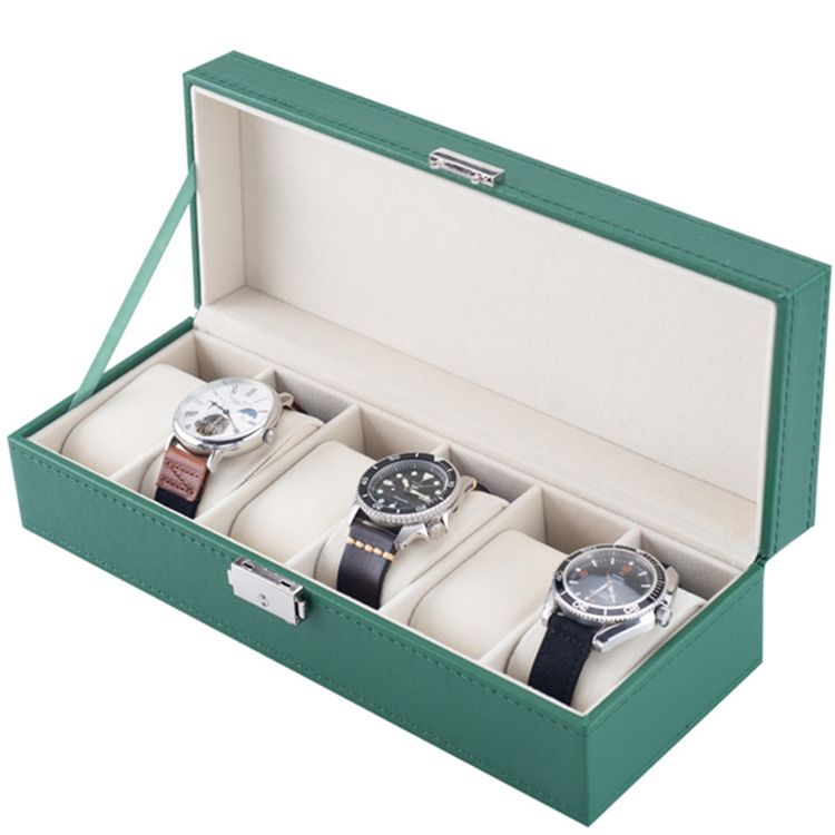 Green Lion Elegant Watch Box 6 Slots, Lightweight & Portable, Elegant Appearance, Metal Push Button, 6 Pillow-lined Spaces - Green