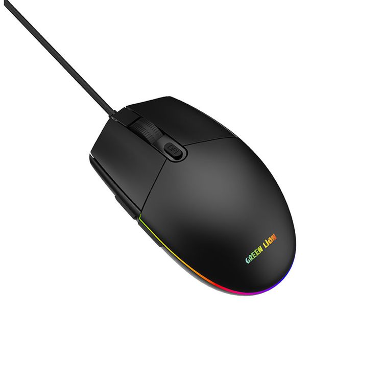Green Lion Wired Gaming Mouse with 3 Million Clicks Lifespan, Innovative Design, Up-to 3600 Resolution, USB Interface, 1.5m Cable Length, 6 Keys, Lightweight - Black