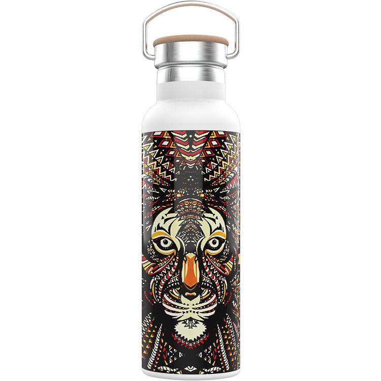 Green Lion Pattern Stainless Steel Portable Water Bottle 600ml/21oz with Handle