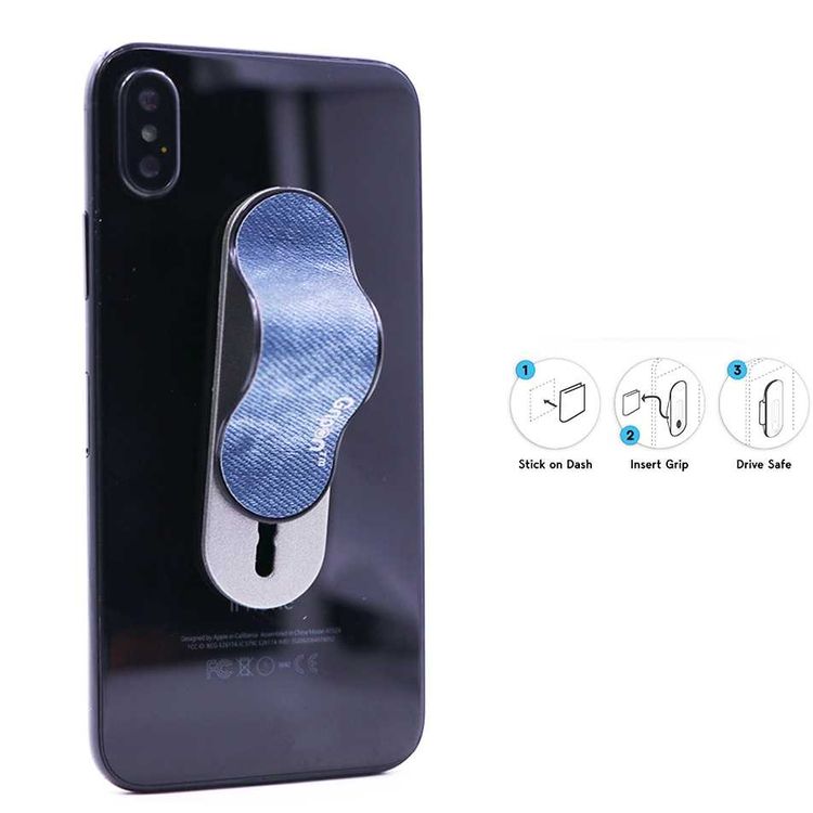 Gripon GP-DEC-BL Finger Phone Strap with x2 Mounting Clips mobile phone holder enhances your grip on your smart device - Denim Blue