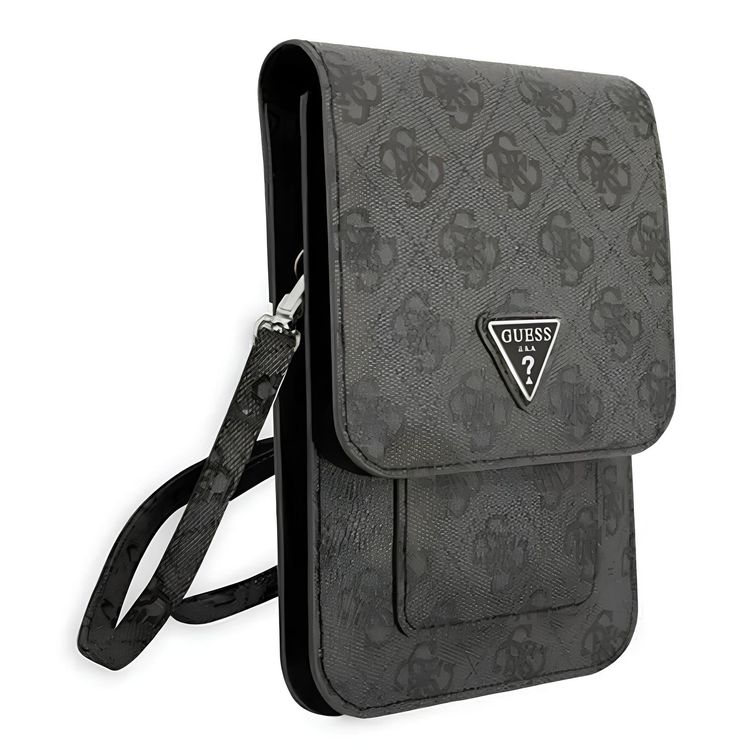 Guess 4G Wallet with Triangle Logo, High-Quality PU Leather Material, Ample Space, Card Slots, Shoulder Strap, Magnetic Snap Closure - Black