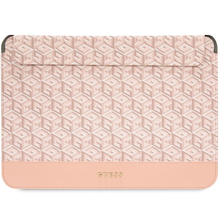 Guess Gcube Stripes Computer Sleeve for MacBook 13"/14" with Synthetic Leather Material, Magnetic Lock, Water Resistant - Pink