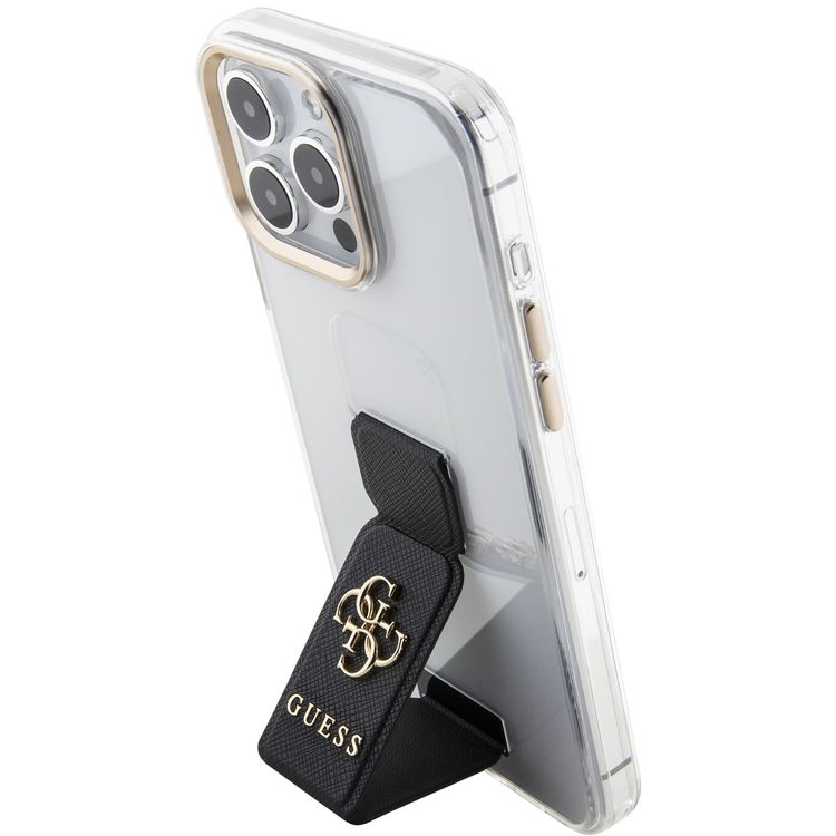 Guess Grip stand Clear Case with Saffiano Grip Leather and 4G Logo for iPhone 15 Series - Black - iPhone 15 Pro