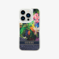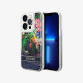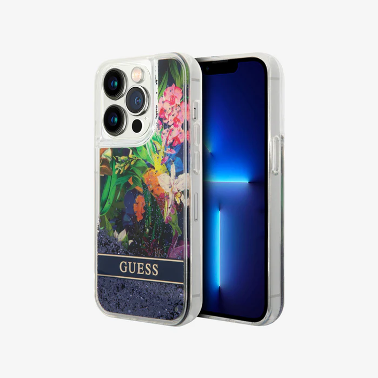 Guess HC Liquid Glitter Case with Flower Pattern - Blue - iPhone 15 Pro