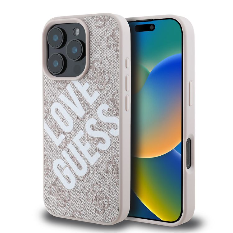 Guess PU 4G Hard Case with Big Love Guess Logo For iPhone 16 Pro Max, High Quality Material, Lightweight, Easy Snap-on - Pink
