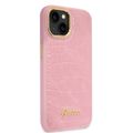 Guess PU Croco Case with Metal Camera Outline, Latest Design iPhone 14 Plus Compatibility - Pink