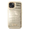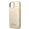 Guess PU Croco Case with Metal Camera Outline, Latest Design iPhone 14 Plus Compatibility - Gold