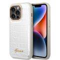 Guess PU Croco Case with Metal Camera Outline, Latest Design iPhone 14 Pro Max Compatibility - Silver