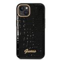 Guess PU Croco Case with Metal Camera Outline, Latest Design iPhone 14 Plus Compatibility - Black