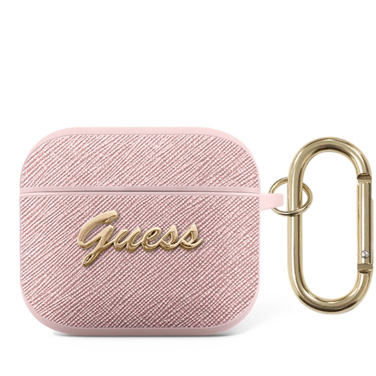 Guess PU Saffiano Case with Script Metal Logo for Airpods 3 - Pink