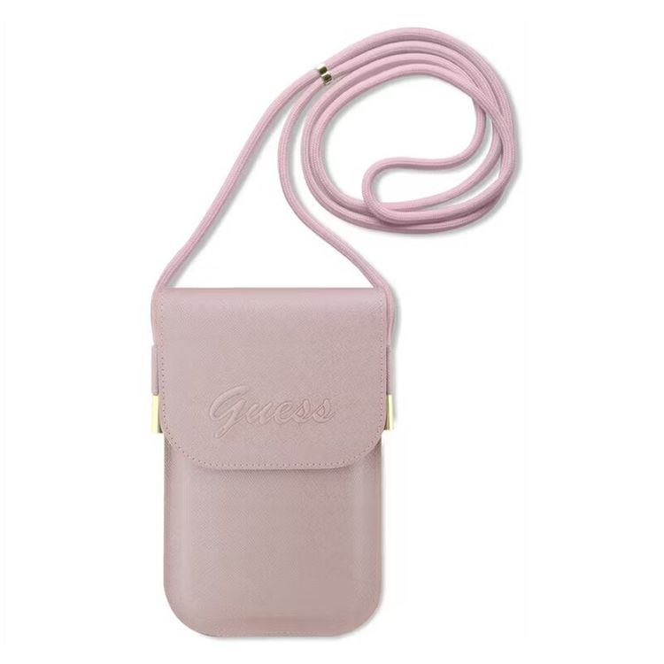 Guess Universal Saffiano Phone Pouch with Embossed Logo, Card Slot, Adjustable Shoulder Strap, Lightweight & Easy to Carry - Pink