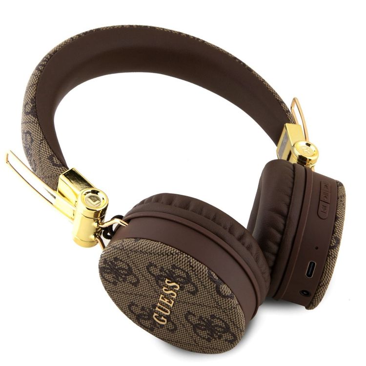 Guess Wireless Headphones 4G PU Leather with Metal Logo - Brown