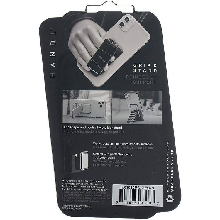 Handl Tech Geo Mobile Stand Phone Grip, Pairs with Any Smart Phone, Multi-functional Kickstand, Compatible with Wireless Charging, Phone grip and Stand - Black