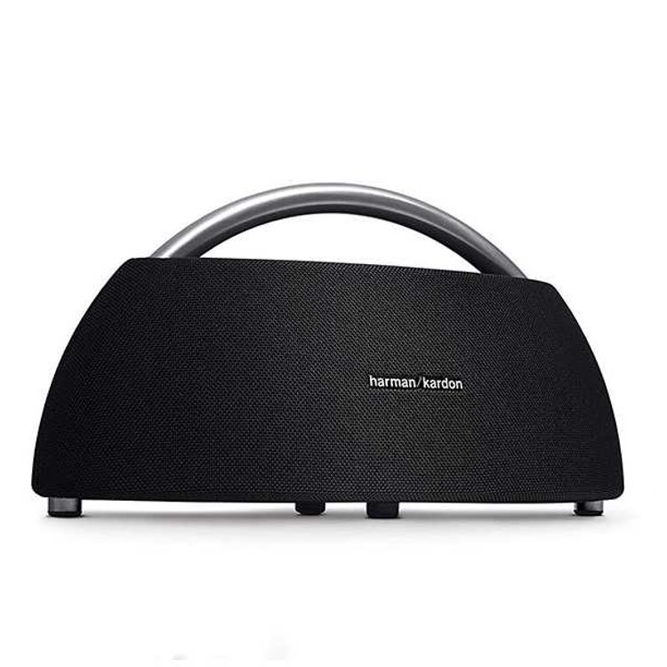 - The characteristic design of Harman Kardon meets in this powerful, fully equipped, portable Bluetooth speaker superior functionality: the Harman Kardon Go + Play. With its four drivers it fulfils the room with a full spectrum of sound. Its rechargeable battery provides up to 8 hours of music enjoyment and allows you to charge your smartphone or tablet PC via the USB connection. You can connect two dual sound-enabled Harman Kardon loudspeaker with each other without any wires and increase your music enjoyment. The Go + Play is also made of high-quality materials - its stainless steel handle and grid material add your interior or your mobile life style is a tasteful note.